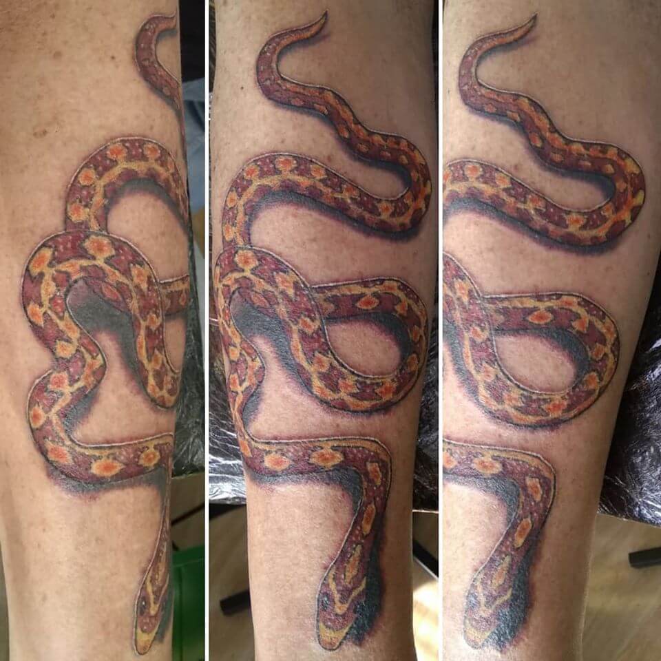 The corn snake is named for the species’ regular presence near grain stores, where it preys on mice and rats that eat harvested corn. If you are looking for inspiration for your corn snake tattoos, here’s a collection of 12+ incredible designs.