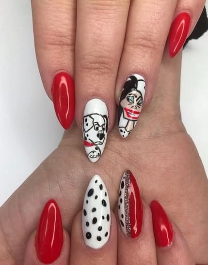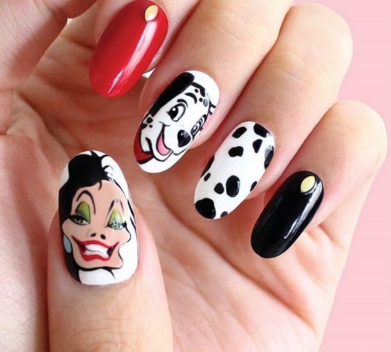 Do you remember the cartoon movie “101 Dalmatians”? There are a lot of nail art ideas inspired by this movie!