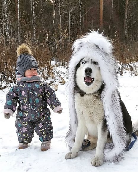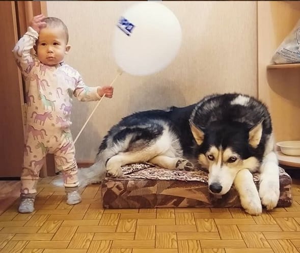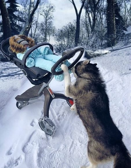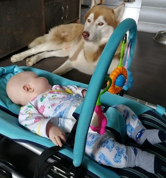 If you`re a Husky owner and going to have a baby, don’t worry! your Husky will be a perfect babysitter!👶🤗