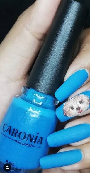#4 Blue manicure & hand painted Shih Tzu