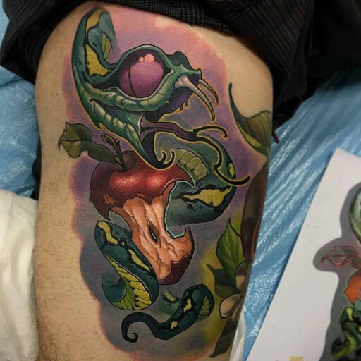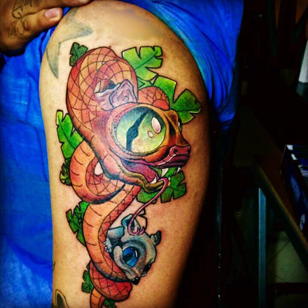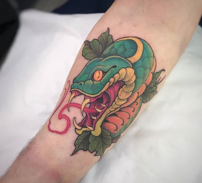 Whether you are a male or a female, you can always get your much-loved snake inked on your most beautiful body part. Here are 15+ great new school snake tattoo ideas for you: