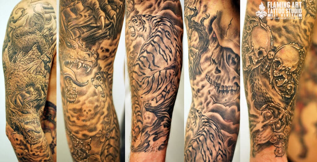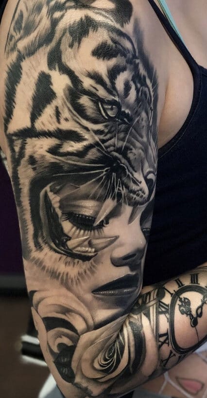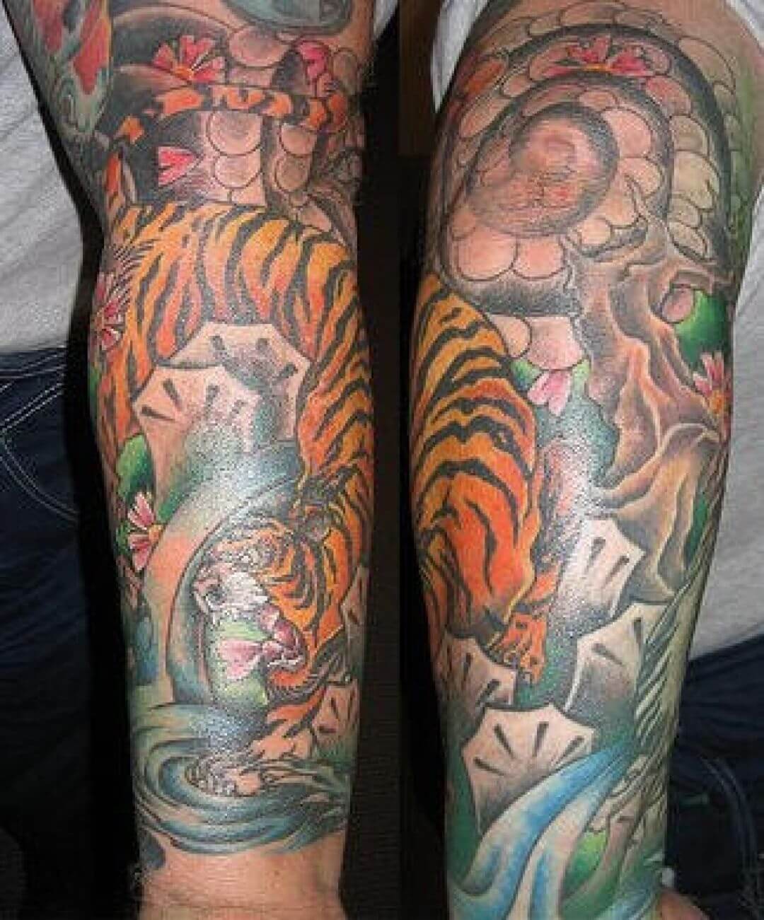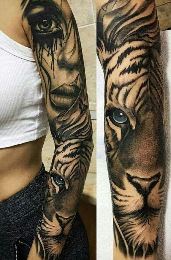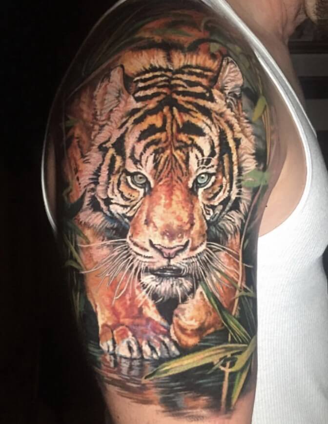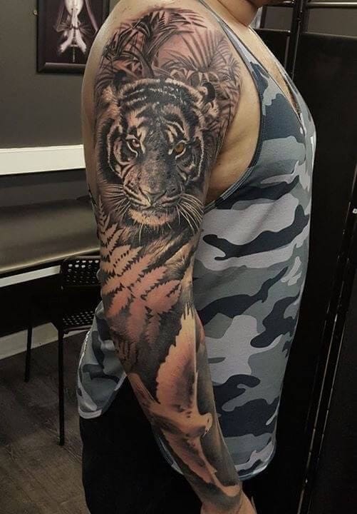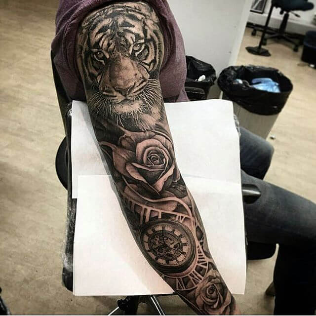 A full sleeve is an excellent option for those who want to paint an entire masterpiece on their arms. Below, we are going to mention tiger tattoo designs and ideas.