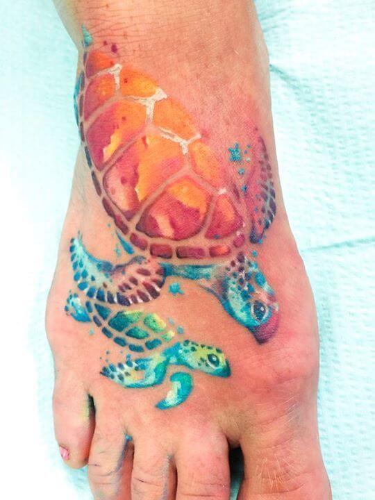 In my opinion, colorful turtle tattoos aren’t so popular, but you can find many interesting ideas of these tattoos too. You should do some research first before copying an already existing design.