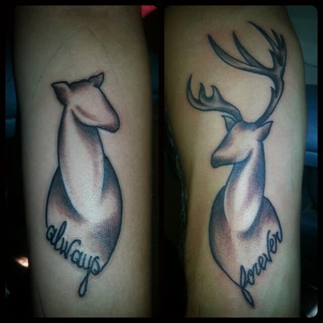 After you’ve gotten yourself in a relationship, you’re just dying to tell the world how much you love your partner. If you want to place permanent ink on your skin, then the best thing would be a symbol of your undying loyalty to your significant other. In this post, I will show you the collection of deer couple tattoo designs.