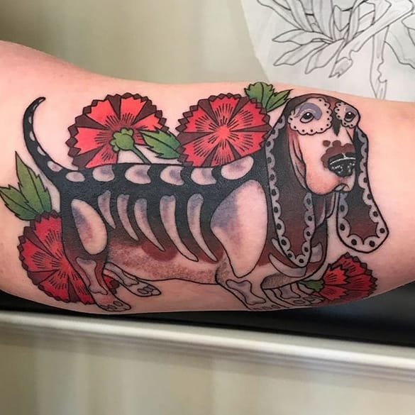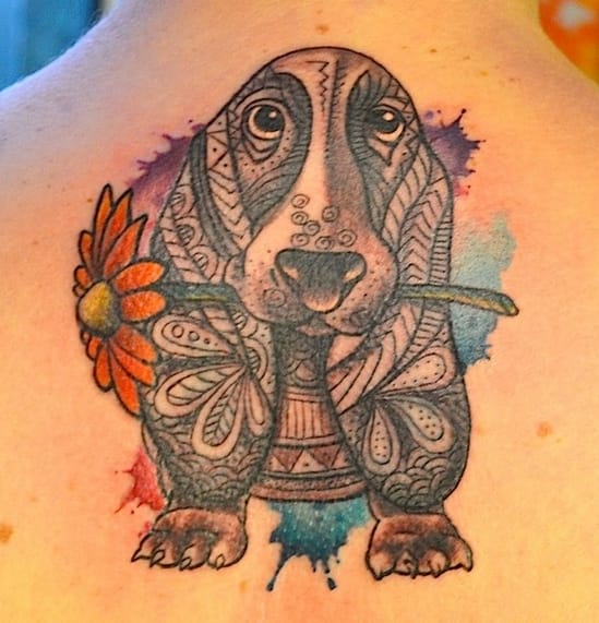 #13 Dog with a flower – watercolor tattoo.