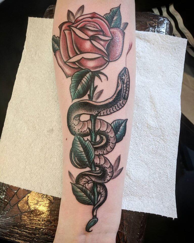 Snake And Rose Tattoo Designs