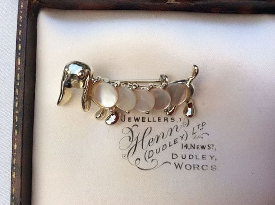 Elegant Dachshund Dog Brooch With Mother Of Pearl (6/16)