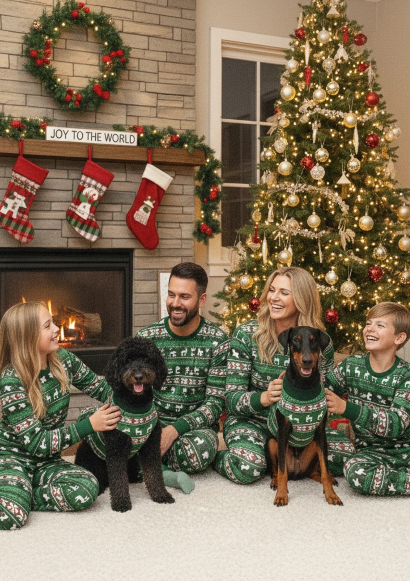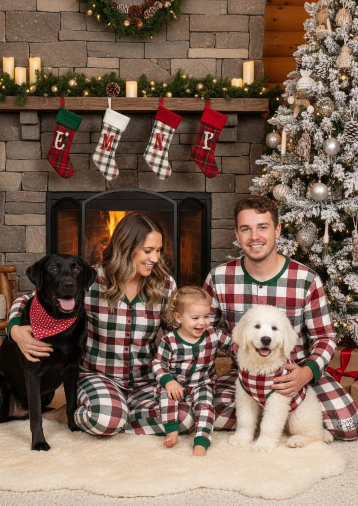 For the home with a Scandinavian or Boho decor style, neutral pajamas are a must. Creams, tans, and soft greys with subtle snowflake patterns allow your dog’s natural coat color to really pop in the family portrait.