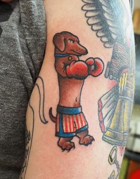 #13 Boxing Dachshund in Rocky Balboa trunks🥊🥊