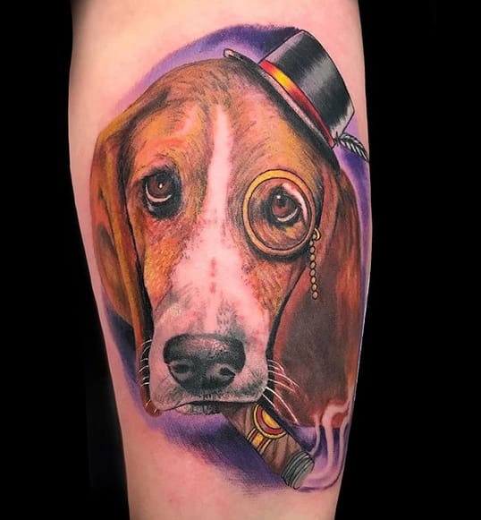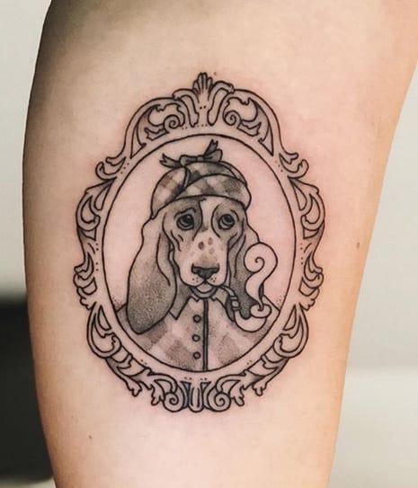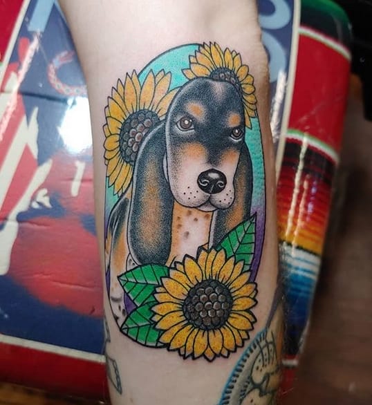 #15 Basset Hound listening to a jukebox in Neo traditional style🎷